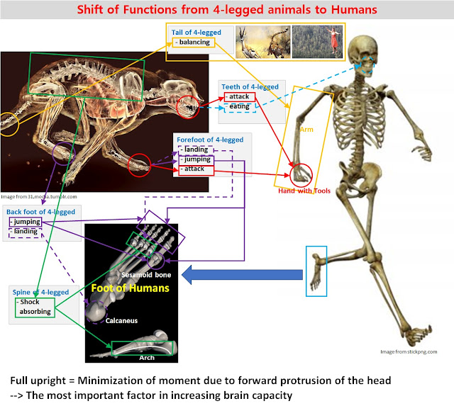 Fourth, it can be interpreted that the functions of the hind feet, spine, and front feet of four-legged mammals are integrated into the human feet. When running, the landing function of the hind feet of four-legged mammals is handled by the calcaneus (heel bone) of modern humans, which exists at position 1 in Figure 4 below, and the shock absorption function of the spine is handled by the arch shape and position 2. , the function of the forefoot is now handled by the 1st metatarsal and sesamoid bone located in position 3.